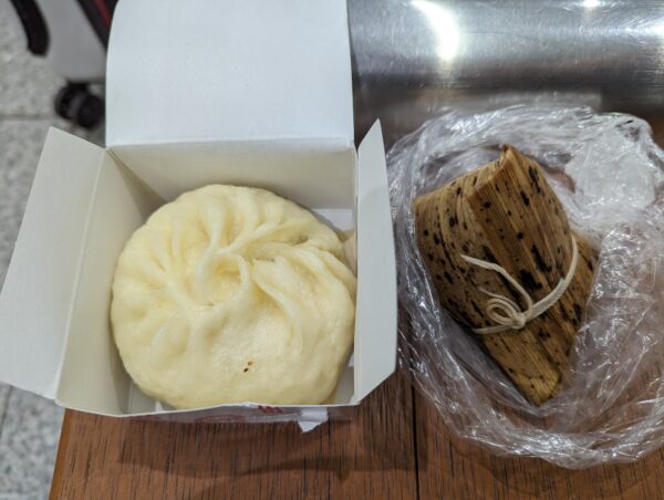 551蓬莱@新大阪駅 2023年7月10日 17時06分(2年前) (・∀・)つ~ クエ !!, 5-関西, お出かけ 新大阪での乗り換え時に551蓬莱でお土産を購入して、ついでにおやつに豚まんと海鮮ちまきを一つずつ。 豚まんは相変わらず底?の竹皮が剥がしづらい… 皮がくっついてきて、餡がこんにちわしてしまいますよね。 味は抜群だけど。 中華ちまきも美味しいけど、こういうところで食べるには向いてないですね。 手がベトベトになって困りました… お絞りくれればいいのに。 関連投稿(YARPP): 道頓堀 神座@新大阪駅 551蓬莱@大阪国際空港 551蓬莱 大津サービスエリアで朝飯 淡路玉葱ラーメン@ラーメン尊 イノダコーヒー 入船食堂@香住 551蓬莱の豚まん
