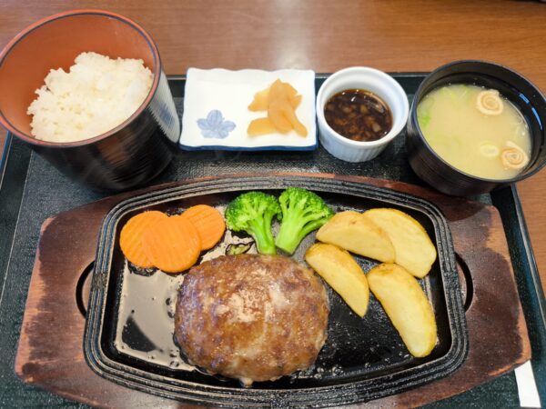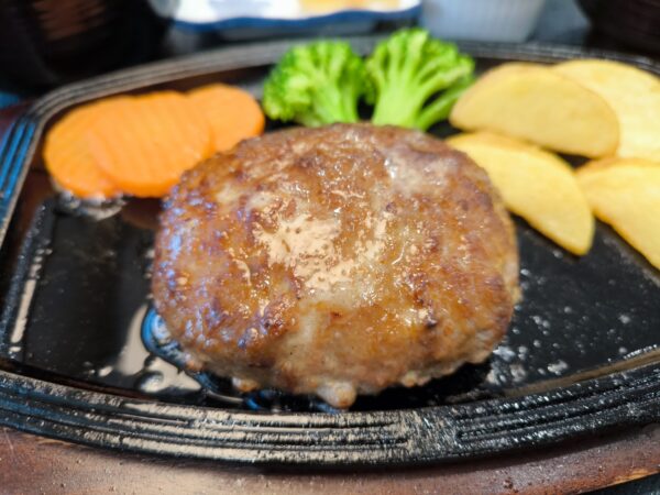 鹿児島にもいる和牛農家さんに対してちょっと複雑な気がしましたが、そのWagyuを使ったいわさきWagyu100%ハンバーグを定食で。