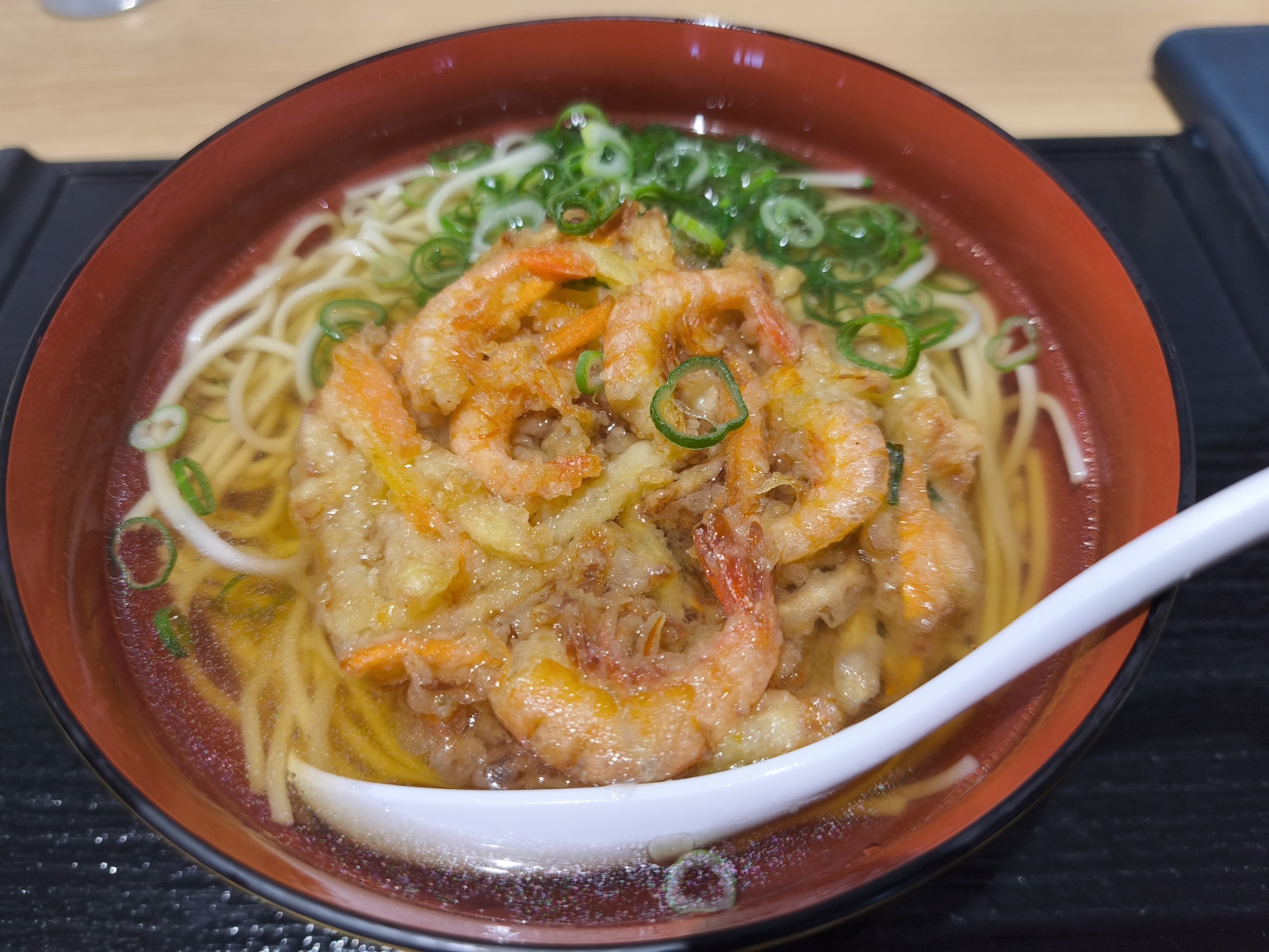 五島うどん つばき@長崎空港 2025年10月1日 13時10分(5日前) 2025年10月4日 15時37分 (・∀・)つ~ クエ !!, 7-九州, お出かけ 香蘭でちゃんぽんを食べてからそんなに時間が経っていませんが、長崎空港では五島うどんを食べておきたいのです。 つばきは記憶と全然違うお店になっていて心配でしたが… かき揚げうどんを。 この細くて平打ちなうどん、美味しいんですよね。 大好きです。 釜揚げうどんじゃないと美味しさが半減するかと思ったけど、汁にしっかりあご出汁が感じられて美味しかったです。 エビたっぷりのかき揚げも良い。 これが空港で800円なんで、とってもお値打ちです。 関連投稿(YARPP): つばき@長崎空港 長崎空港 鹿遊茶屋@高鍋? ウエスト味の街@麦野 牧のうどん 二丈店 基山パーキングエリア 名代そば幸@島原 資さんうどん@苅田