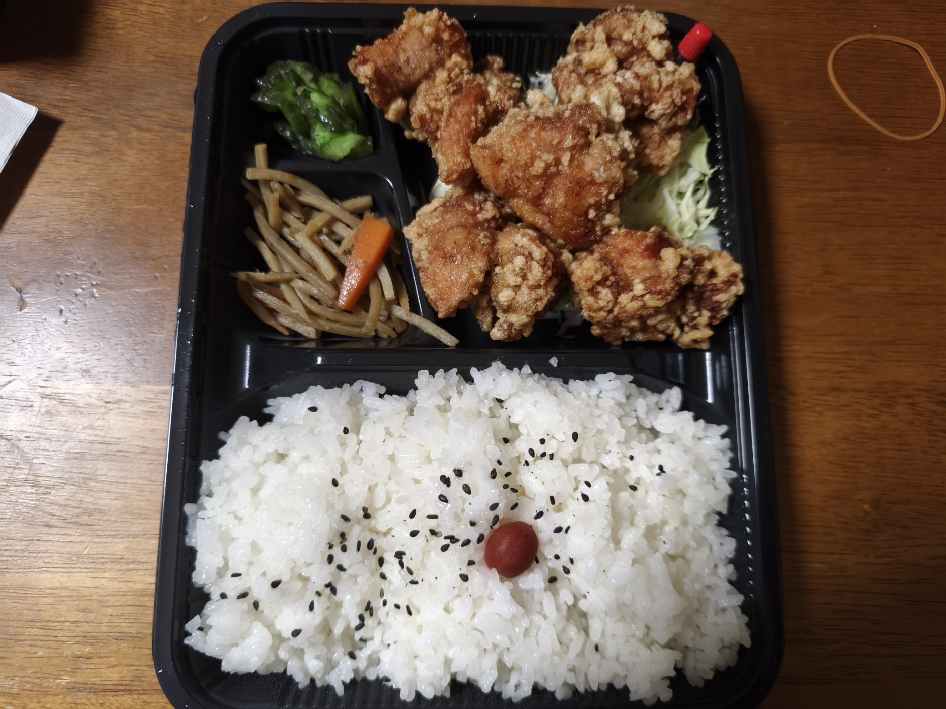 大きめの唐揚げが5個も入っていて、当然蓋は閉まってませんでしたw