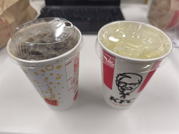 蓋が上に出っ張るマックと横に出っ張るケンタ、口にしたときに違和感がないのは(私にとっては)圧倒的にマックですね。