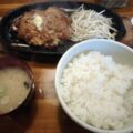 お店オススメの君のハンバーグにご飯と味噌汁セット。