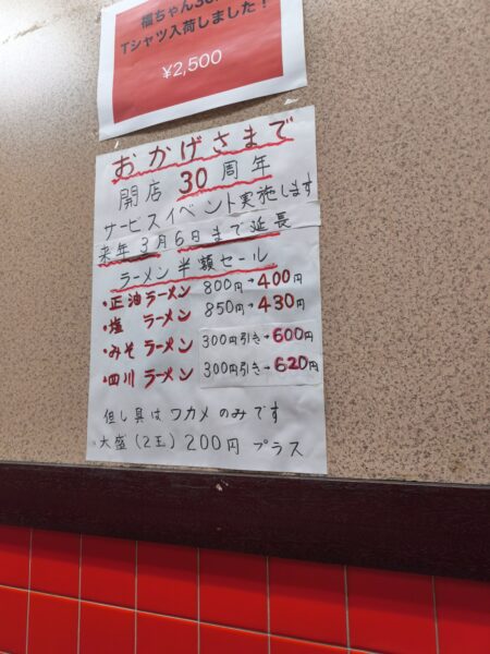 開店30年近くかと思ったら31年目だそうで、30周年のサービスイベントを続けているとか。