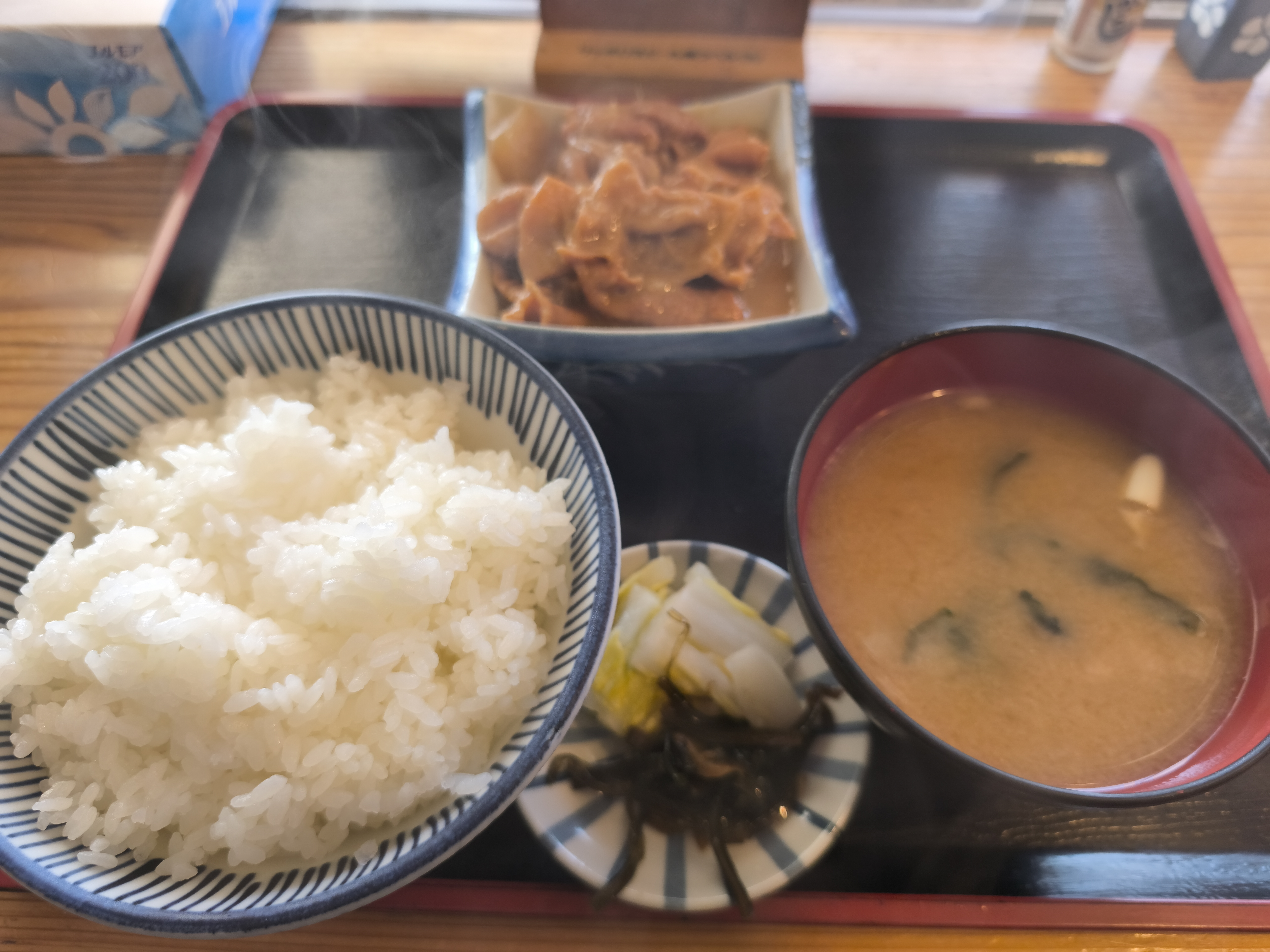 さっき食堂ミサでラーメンを食べたばっかりだったので、軽めに半もつ煮定食を。