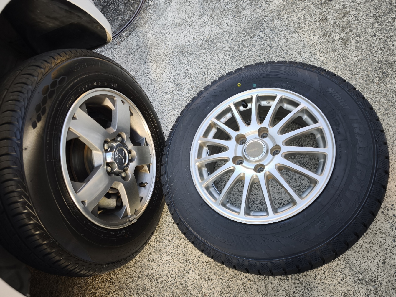 で、自宅に帰ってきてさっそくスタッドレスに履き替え。