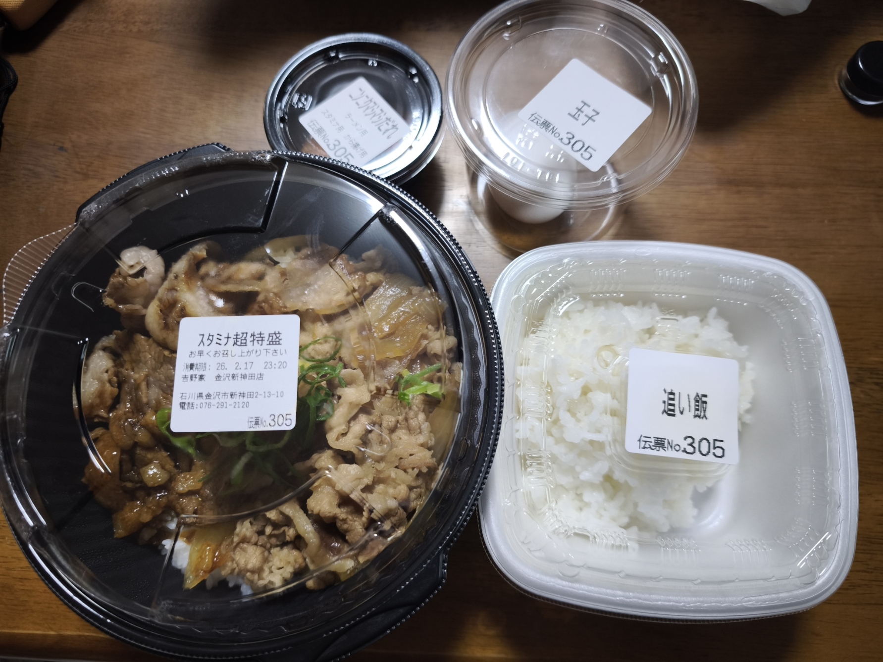 夕飯は面倒臭くなって吉野家でテイクアウト。