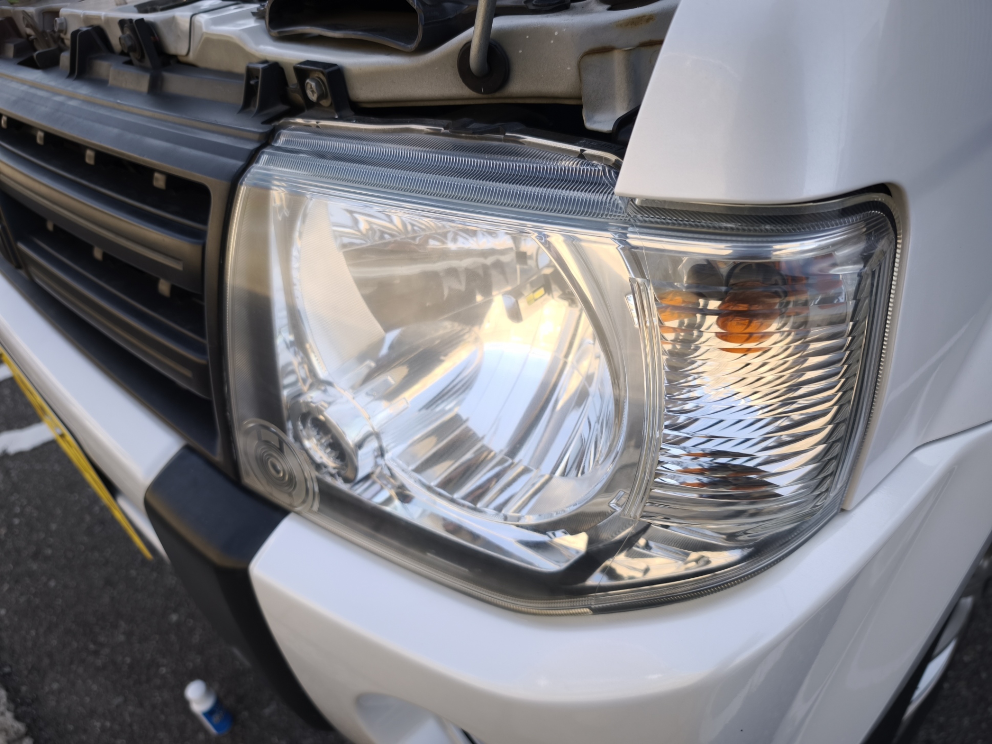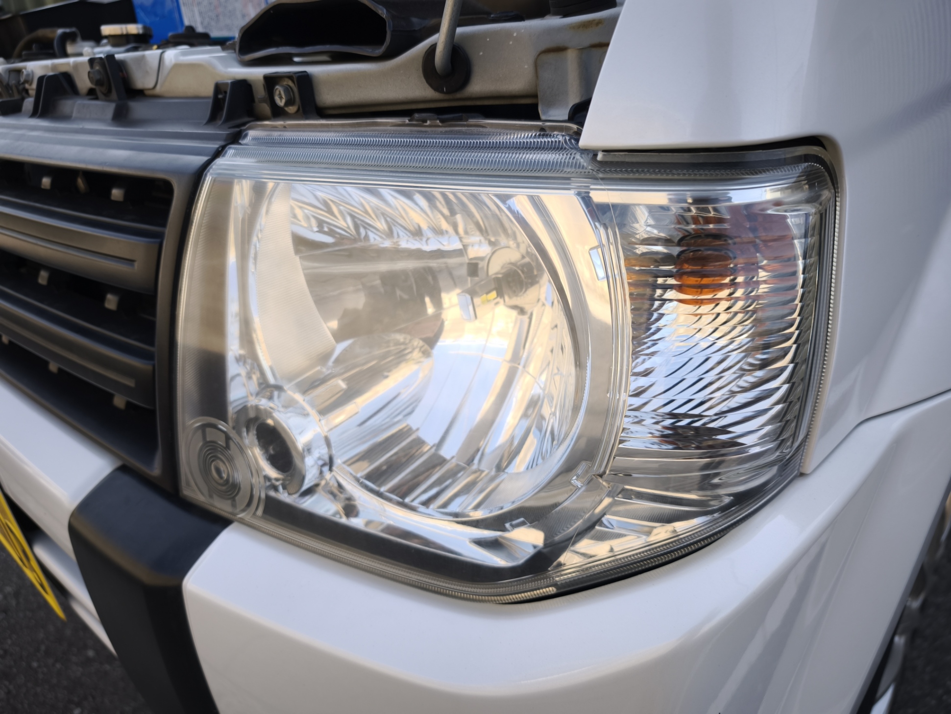 ご多分に漏れずパジェロミニのヘッドライトは黄ばんでいたので、KUREのLOOX ヘッドライト クリア&プロテクトを試してみました。