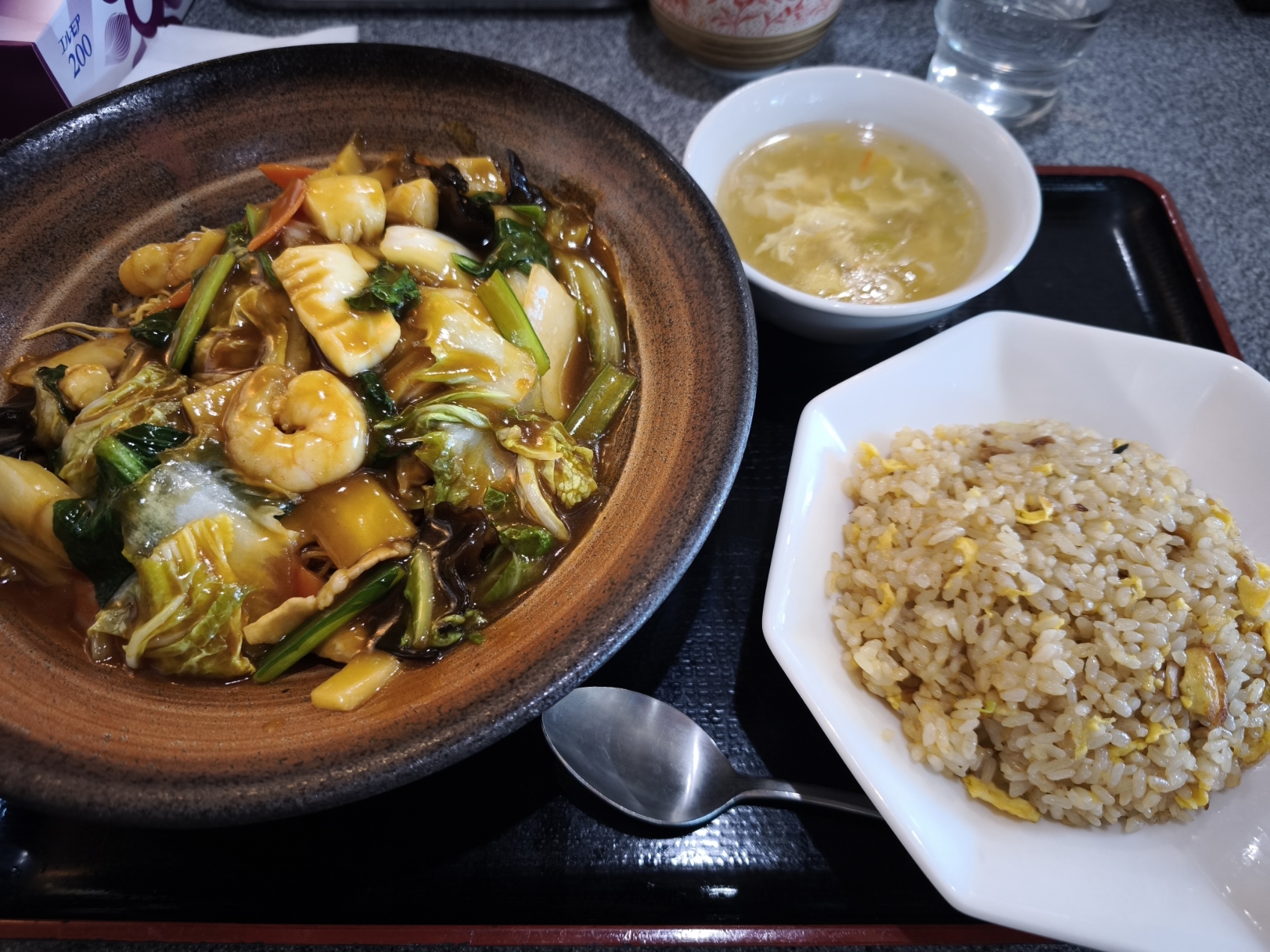 上海麺餃王@金沢市 2026年3月17日 12時25分(11時間前) (・∀・)つ~ クエ !!, 4-中部・甲信越・北陸, お出かけ 上海麺餃王でお昼ご飯を。 今日はちゃんとランチメニューを見て、揚げそばとミニチャーハンのセットを。 揚げそばは所謂かた焼きそばですね。 と思ったけど、この麺の感じは細麺皿うどんの醤油餡って感じ? 具沢山で美味しいけど、かなり味が濃いです… 反対にチャーハンはシンプルで大人しめな味付けなので、揚げそばの餡を少し掛けて食べたらより美味しくなりました。 関連投稿(YARPP): 上海麺餃王@金沢市北間町 から揚げ専門 八兵衛@金沢市 関英ドライブイン@湯田中 はせ川@喜多方 プノンペン国際空港 麺家 れもん@徳島駅 グリルおおくぼ@練馬区平和台 ステーキライスとカレーの店 センタービーフ@池袋