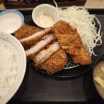 松のや 2026年4月16日 22時00分 (・∀・)つ~ クエ !!, 4-中部・甲信越・北陸, お出かけ 今日は松のやで夕ご飯。 カナダ大麦豚厚切りロースカツとささみカツの定食を。 すごいボリューム! 松のやってそういうお店なの?ってく...