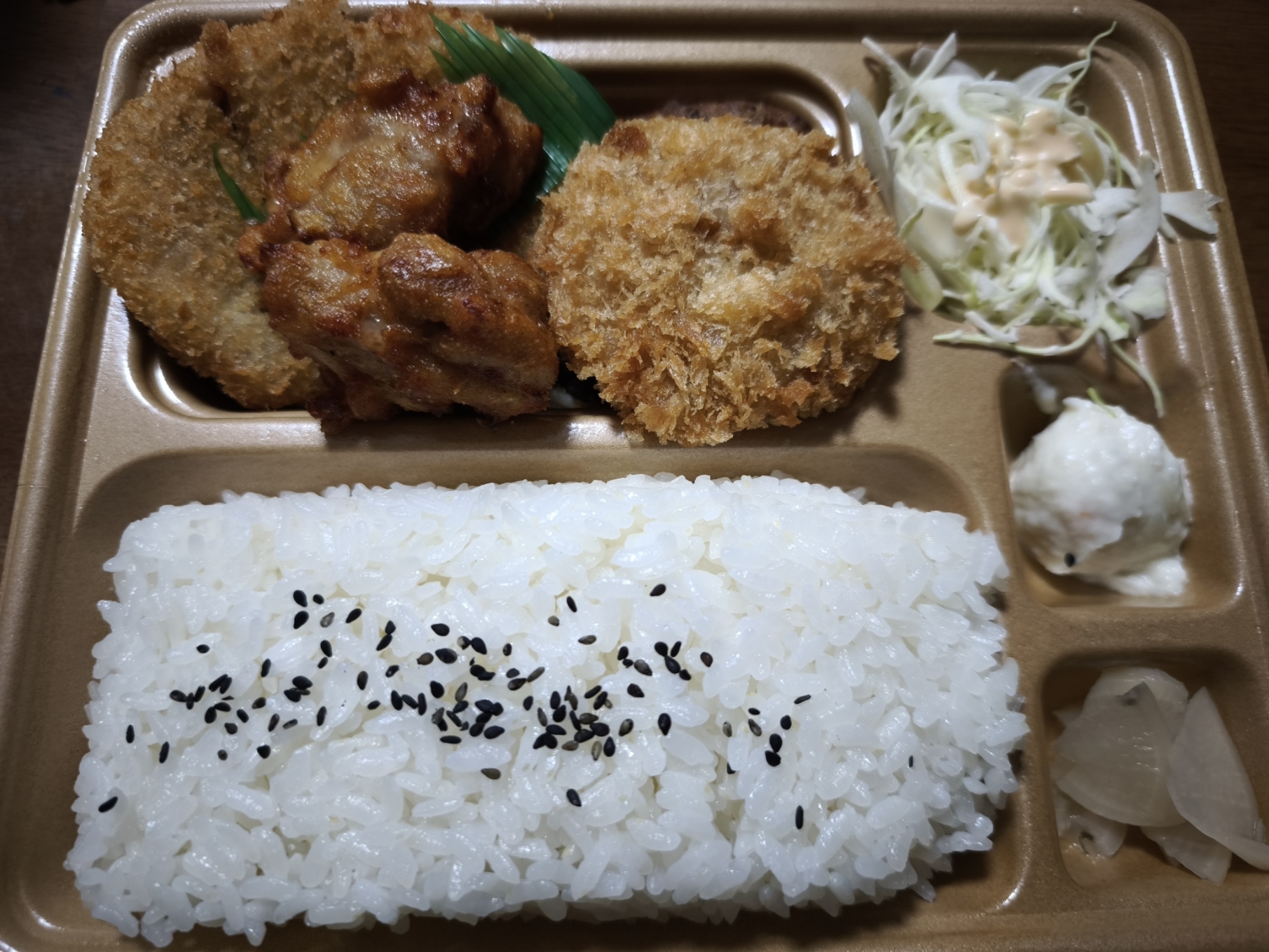 メンチカツととんかつ、唐揚げ、ハンバーグとみんなが好きなものばかり入ってます。