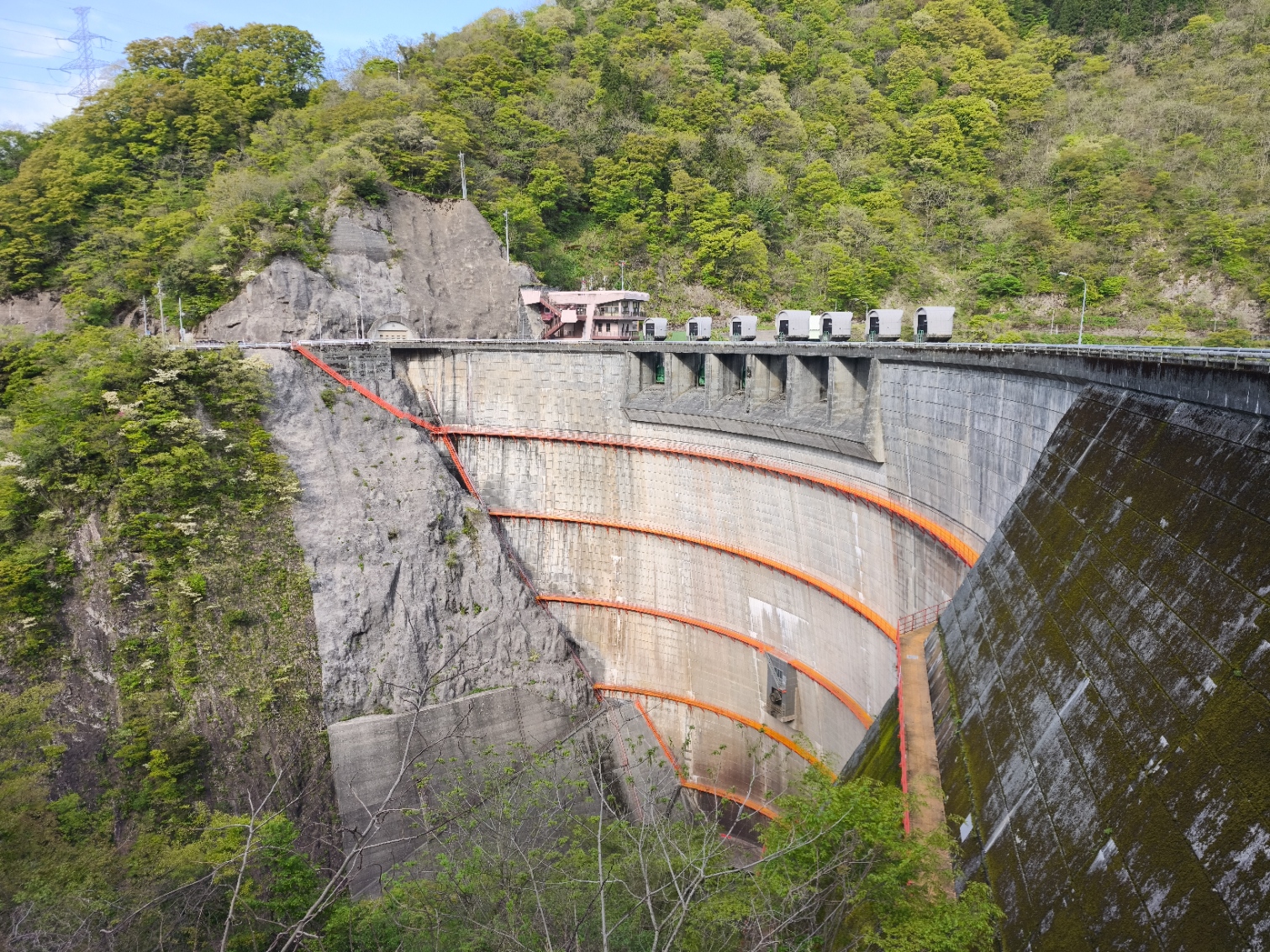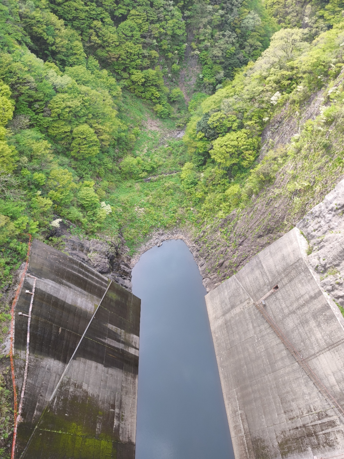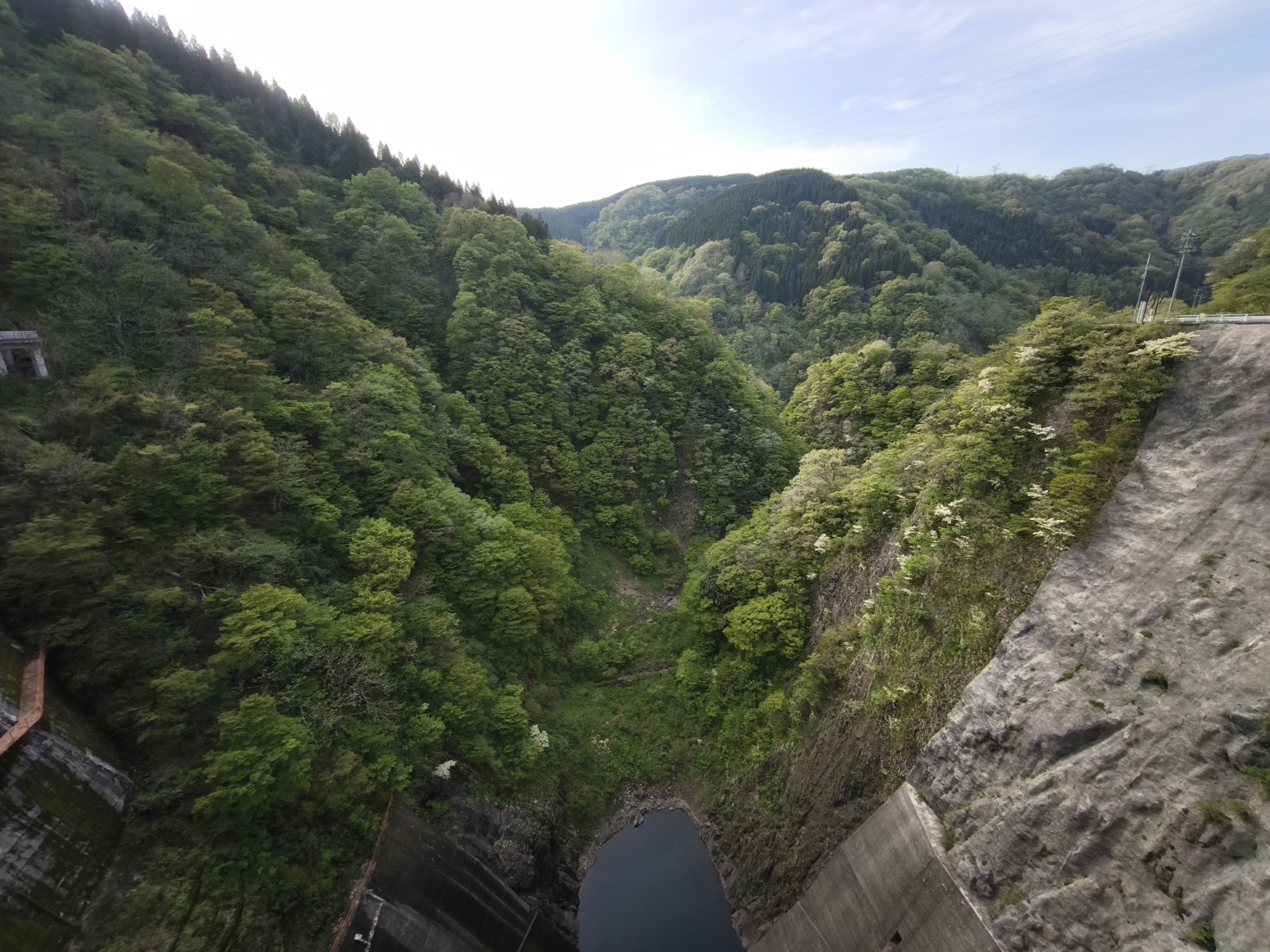 刀利ダム 2026年4月26日 16時35分(6時間前) お出かけ 湯涌温泉から福光の方に抜ける途中にあった刀利ダムです。 竣工は1967年と相当古いです。 ドーム型アーチ式ダムだそうで、同年代の黒部第4ダムと同じ間組の施工だとか。 やっぱり昔はダムと言ったら間組だったのかな。 堤体はかなりの高さ。 スマホを落っことすんじゃないかとビクビクしながら撮ってますw ってか、川に繋がってない? どうなってるの?? 臼中ダムの方に抜ける道は、平日は時間通行止めになっているようですのでお気をつけください。 関連投稿(YARPP): 江洋軒@明石 渋滞… 帰京 喫茶 赤いサニー@名古屋 彦家@北本 山ぼたん@岡谷(諏訪湖) 北海道らーめん みそ熊 東松山店 カレーの店 路@赤間